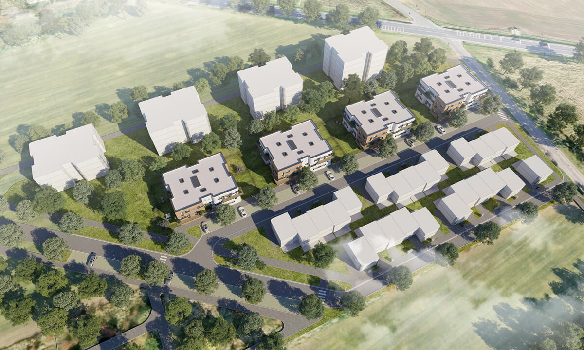 Novostavba menšího sídliště formou bytových domů. V nabídce budou všechny dispozice od 1+kk až po 4+kk. Budou vynikat vysokým standardem s důrazem na detail. Luxusní italské dlažby, kvalitní podlahy, prestižní vybavení koupelen či velkorysé interiérové dveře se skrytými panty.